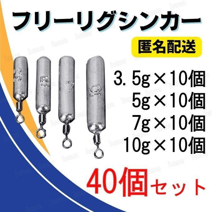 > フリーリグシンカー 40個 3.5g 5g 7g 10g ダウンショット シンカー スティック おもり 重り ブラックバス 釣り フィッシング 仕掛け 海釣り