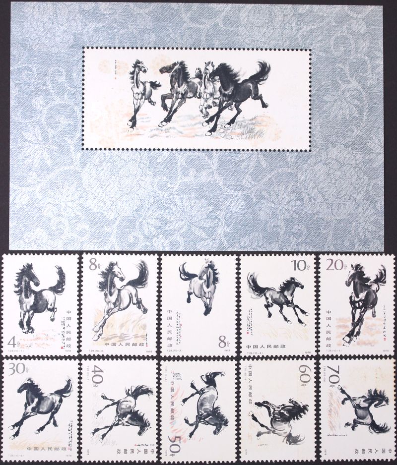 - 90■未使用 中国切手 T28m 徐悲鴻 奔馬シリーズ小型シート T28 徐悲鴻シリーズ 10種完
