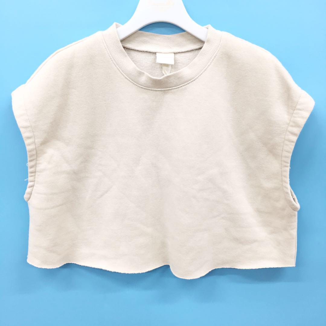 - H&M エイチ&エム クロップド丈 ノースリーブスウェットトップ オーバーサイズ ショート丈
