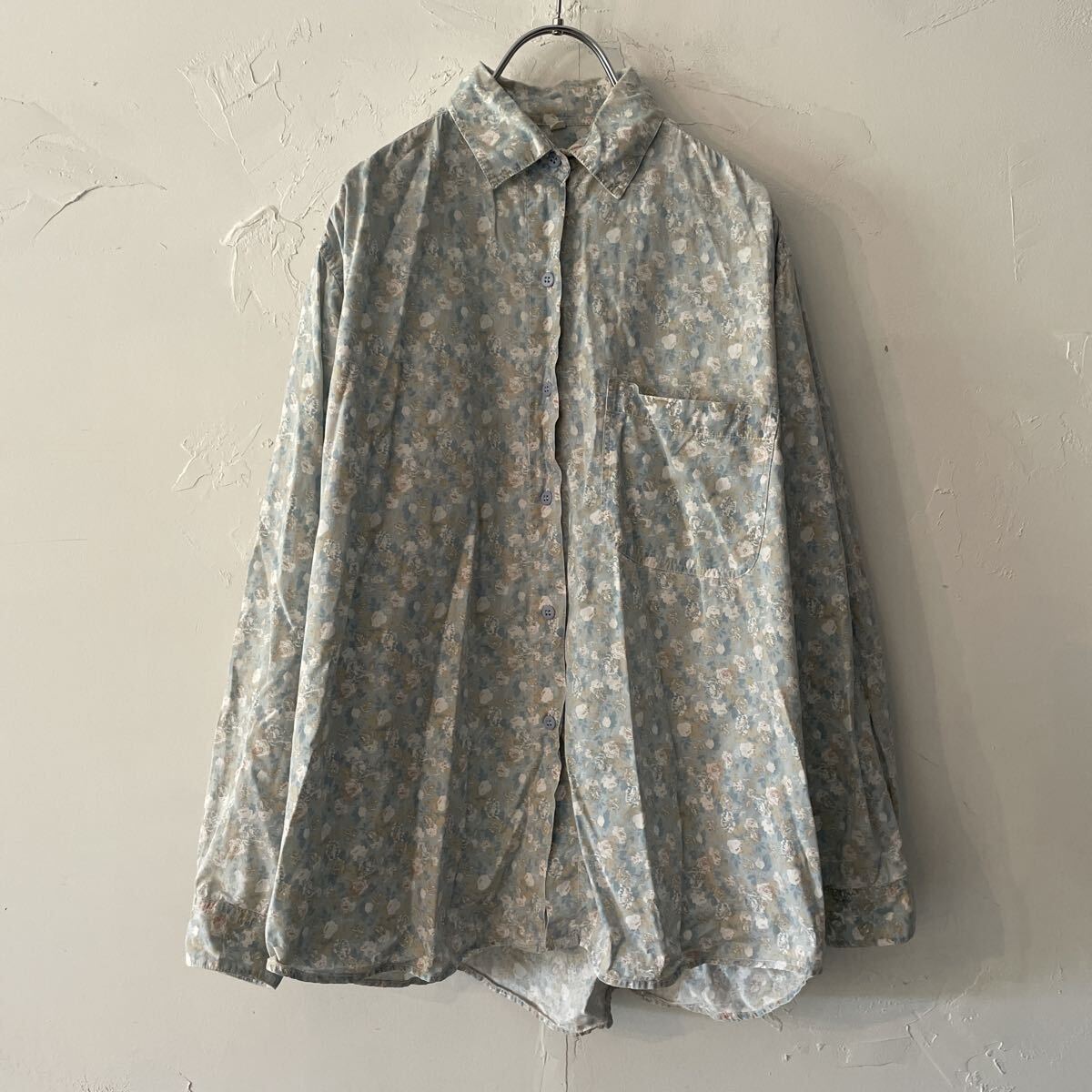 - ビンテージ ヨーロッパ古着 目の詰まったコットン100% 小花柄 長袖シャツ 5 ヴィンテージ 水色 レディース 綿 ブルー ユーロ古着