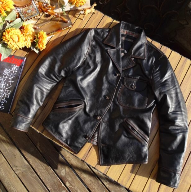- 高品質 ライダースジャケット 馬革 ホースハイド 革ジャン レザージャケット 本革 シングルライダース メンズファッション