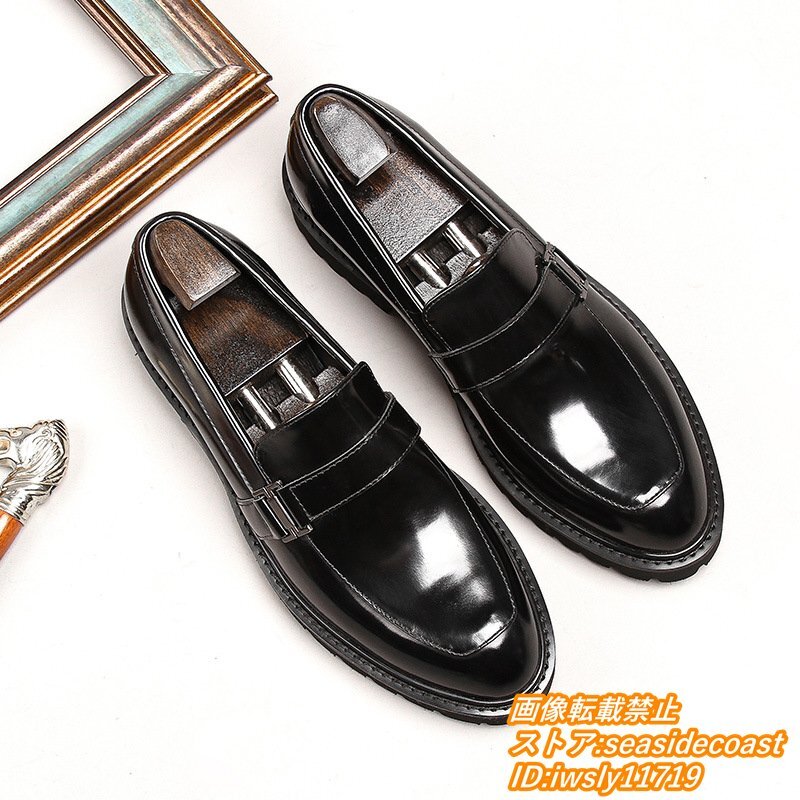 - 定価9万超★最高級 牛革 ビジネスシューズ 本革 レザーシューズ 厚底 5cm身長アップ 超希少 職人手作り 紳士靴 フォーマル 革靴 黒 26.0cm