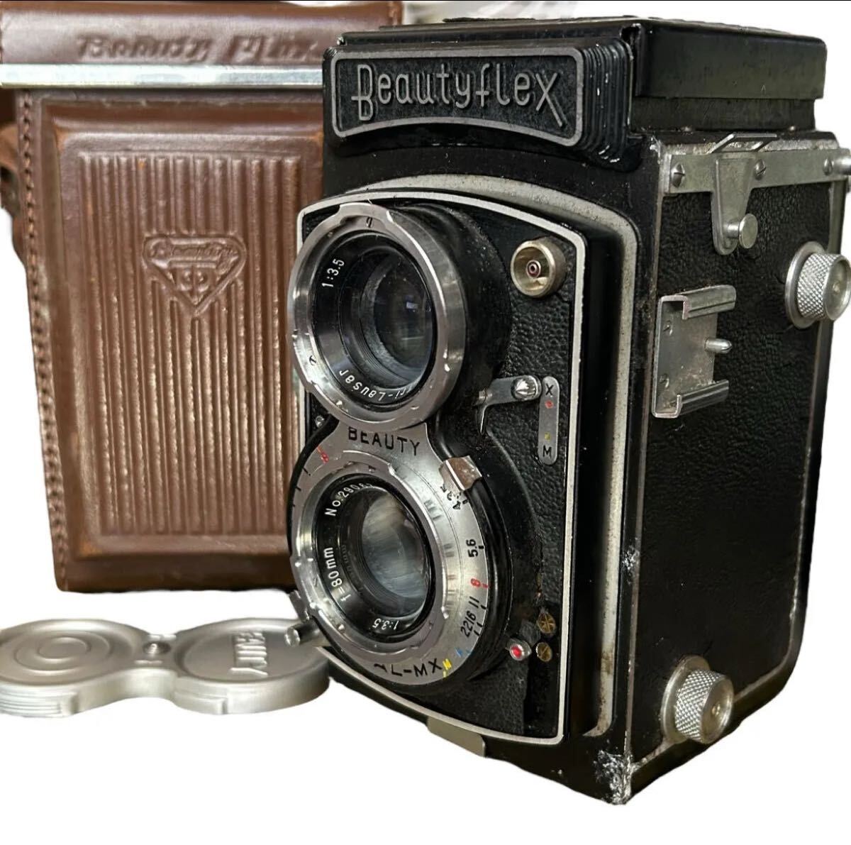 - 希少 BEAUTY FLEX D Tri-Lausar F.C Biokor F3.5 80mm 二眼レフ シャッター全速度OK レザーケース付き