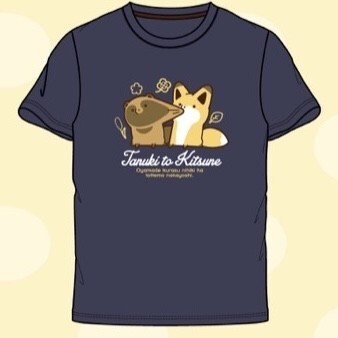 - ゆうパケ♪ タヌキとキツネ Tシャツ ネイビー Mサイズ