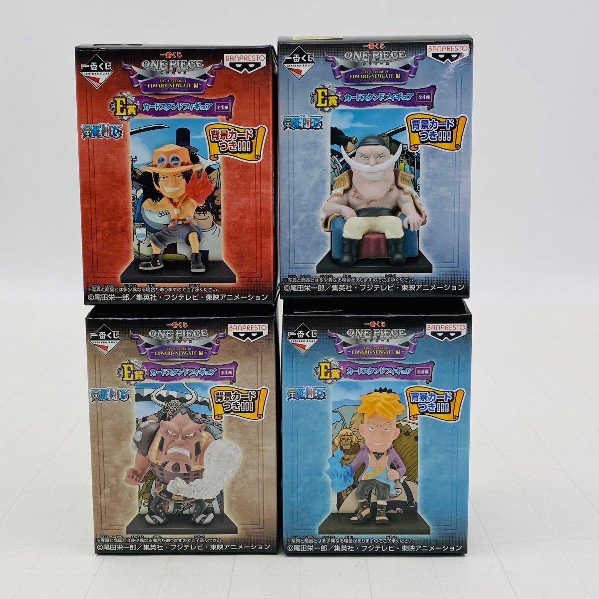 - 新品未開封 一番くじ ワンピース The Legend of EDWARD・NEWGATE エドワード・ニューゲート 編 E賞 カードスタンドフィギュア 全4種セット
