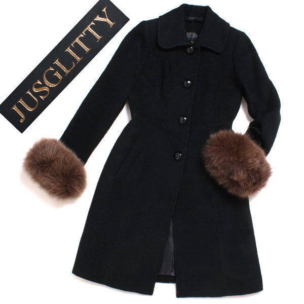 > 新品 JUSGLITTY FOXファー付 5WAYコート 定価55,650円 size1 ブラック 49420032 ジャスグリッティー