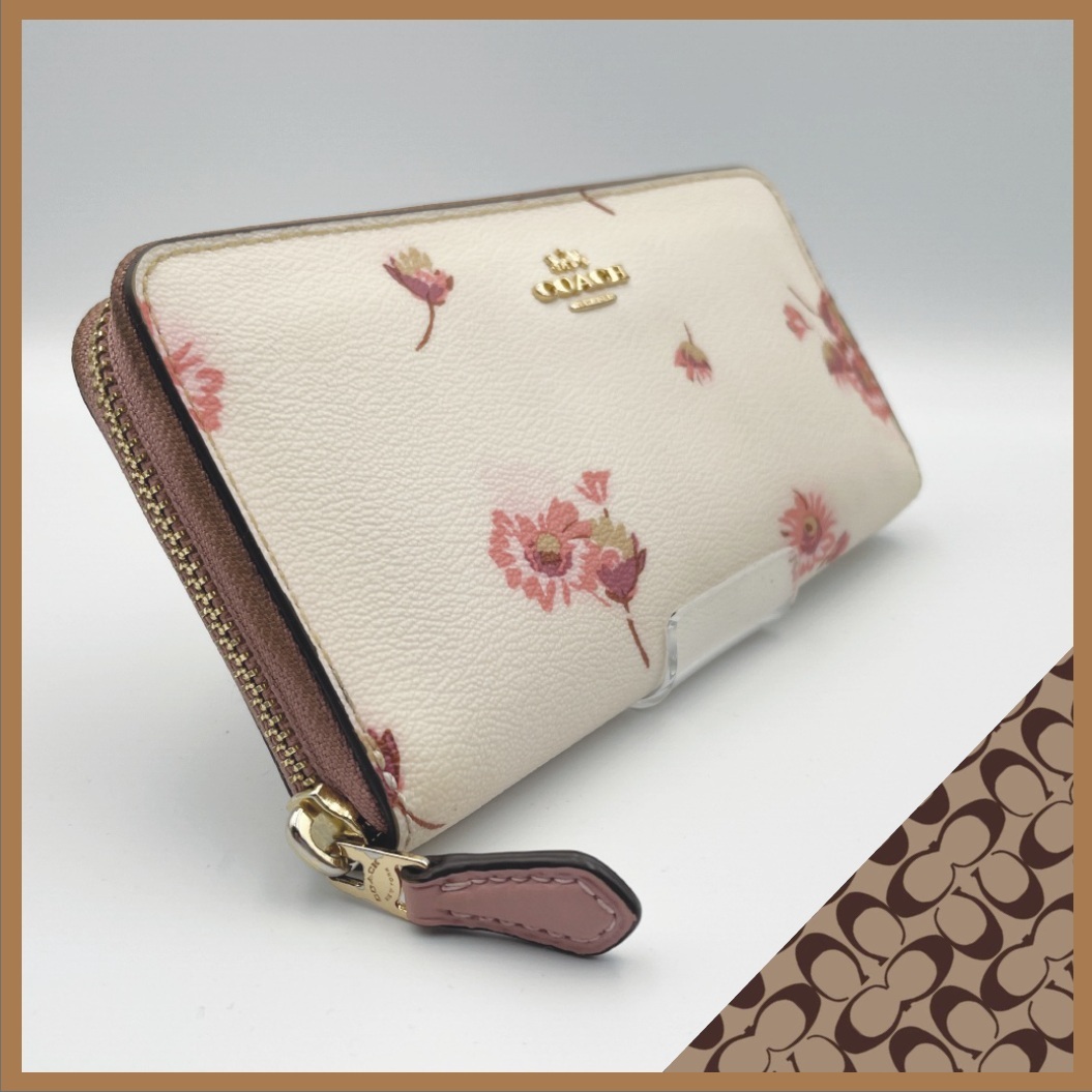 - COACH コーチ 花柄 フローラル ラウンドファスナー 二つ折り財布 ミニ財布 オフホワイト/ピンク