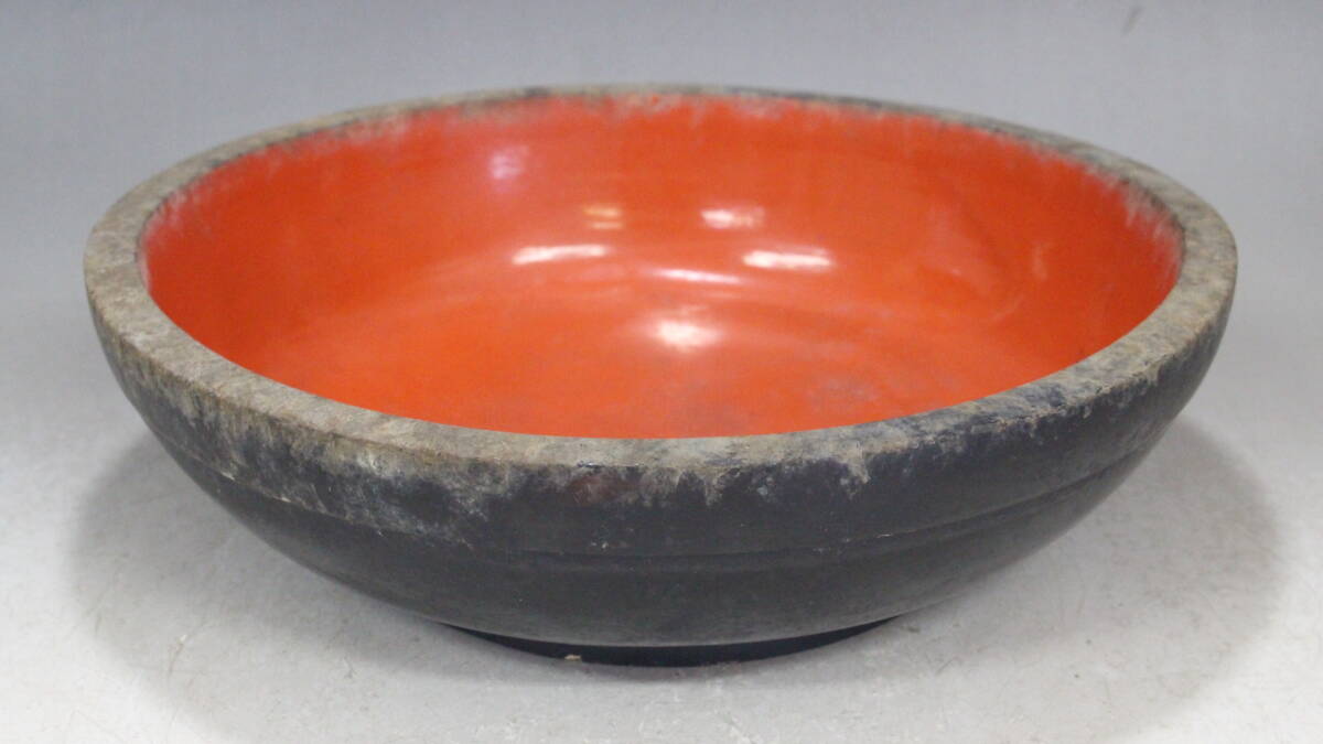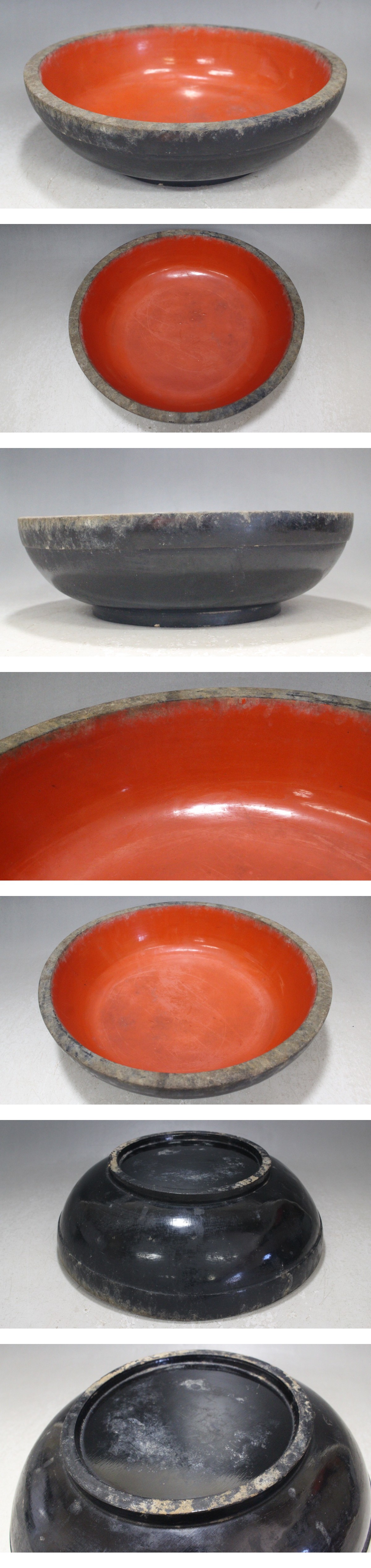 - 黒朱漆塗 木製こね鉢 (約400g) 時代物 漆器工芸品 チ41