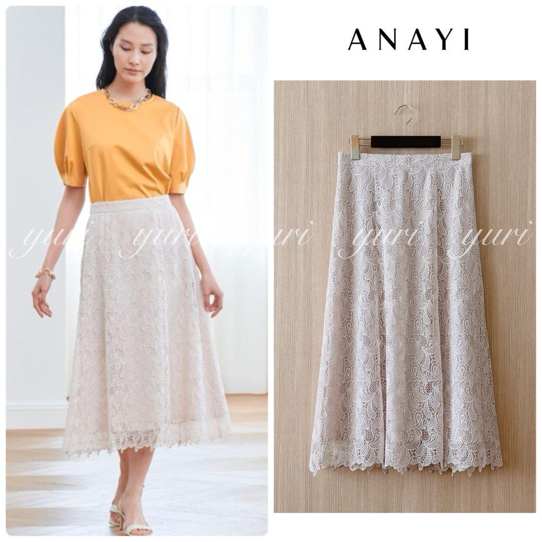 - 【667】アナイ リーフボーダーレースセミフレア スカート アイボリー 38