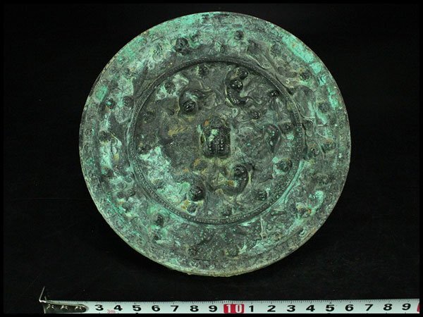 - 【金閣】古美術 古鏡 獣紋 銅鏡 φ16cm コレクター蔵品 送料無料(YC539)