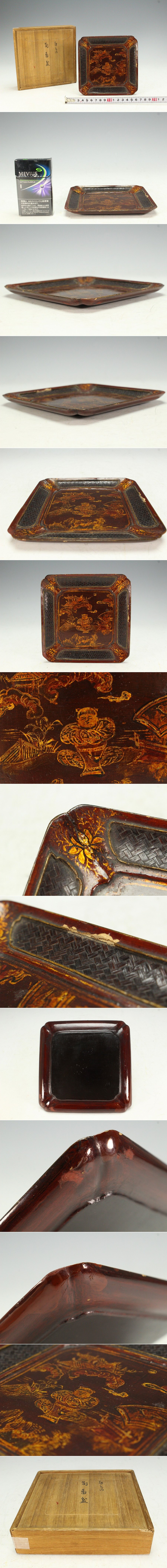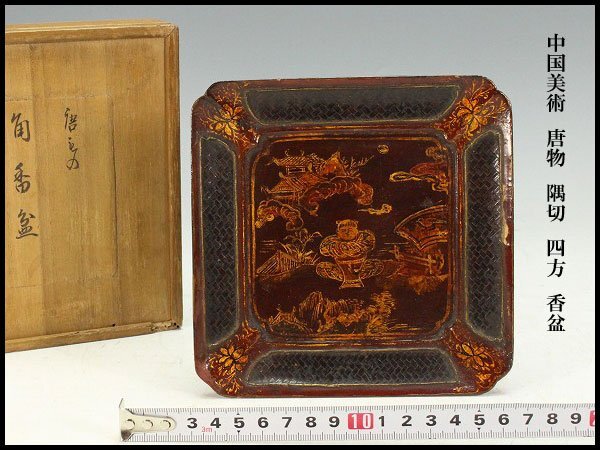 - 【金閣】中国美術 唐物 隅切 四方 香盆 旧家蔵出 送料無料(YC593)