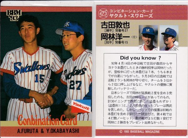 > ●1993BBM【古田 敦也&岡林 洋一】コンビネーションカード473& 92岡林 297 2種セット:ヤクルト
