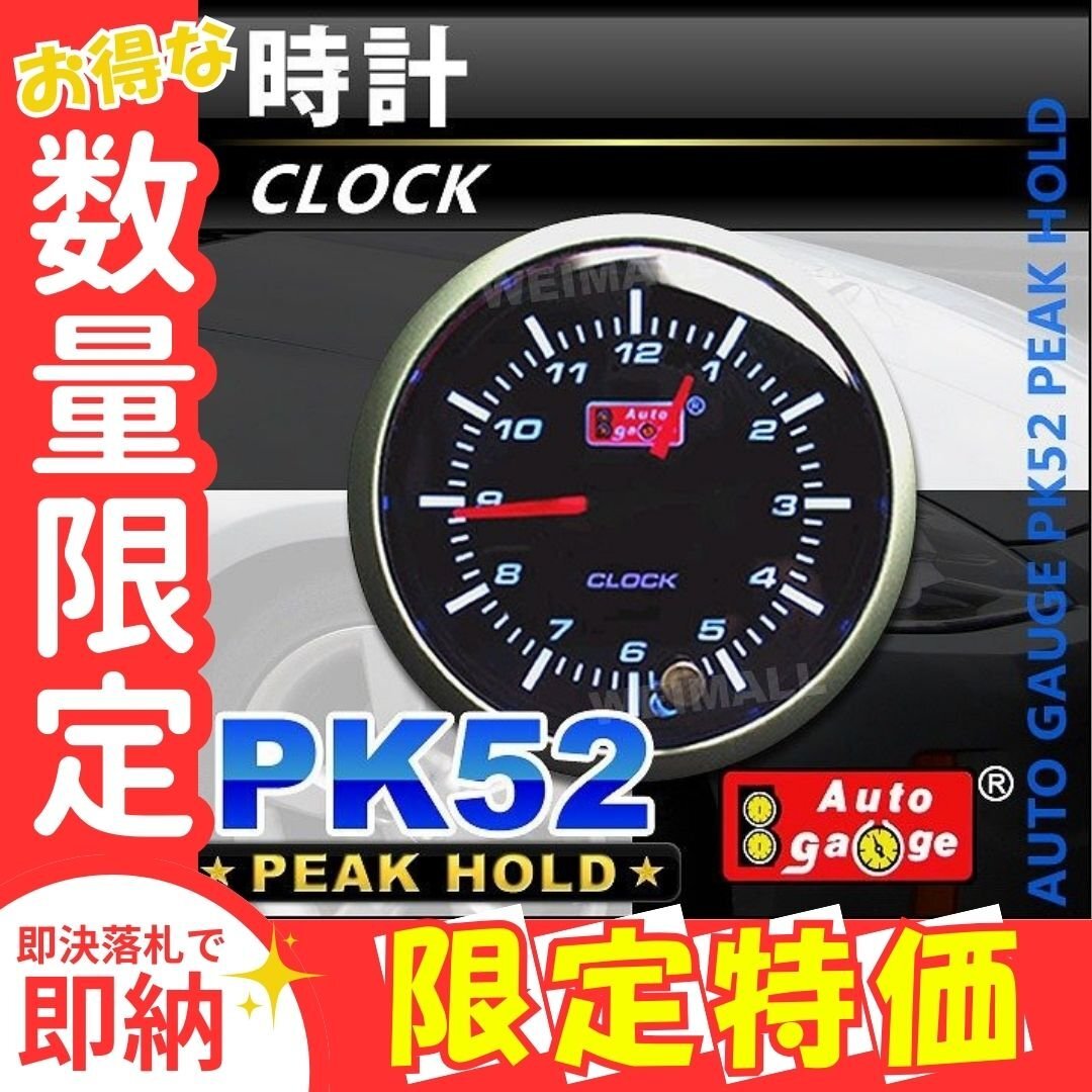 - 【限定セール】オートゲージ 時計 52mm 52Φ スイス製ステッピングモーター スモークフェイス 置くだけ簡単取り付け 追加 計器 ブラック