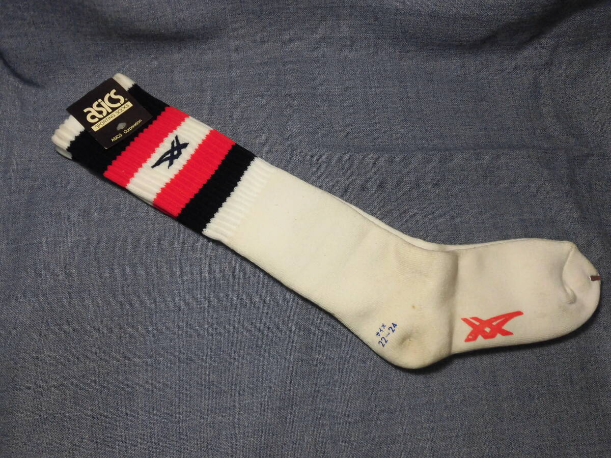 - レトロ アシックス ハイソックス 靴下 スクール バレー バスケ カジュアル 通学 スポーツ リブ 未使用 長期保管品 5422