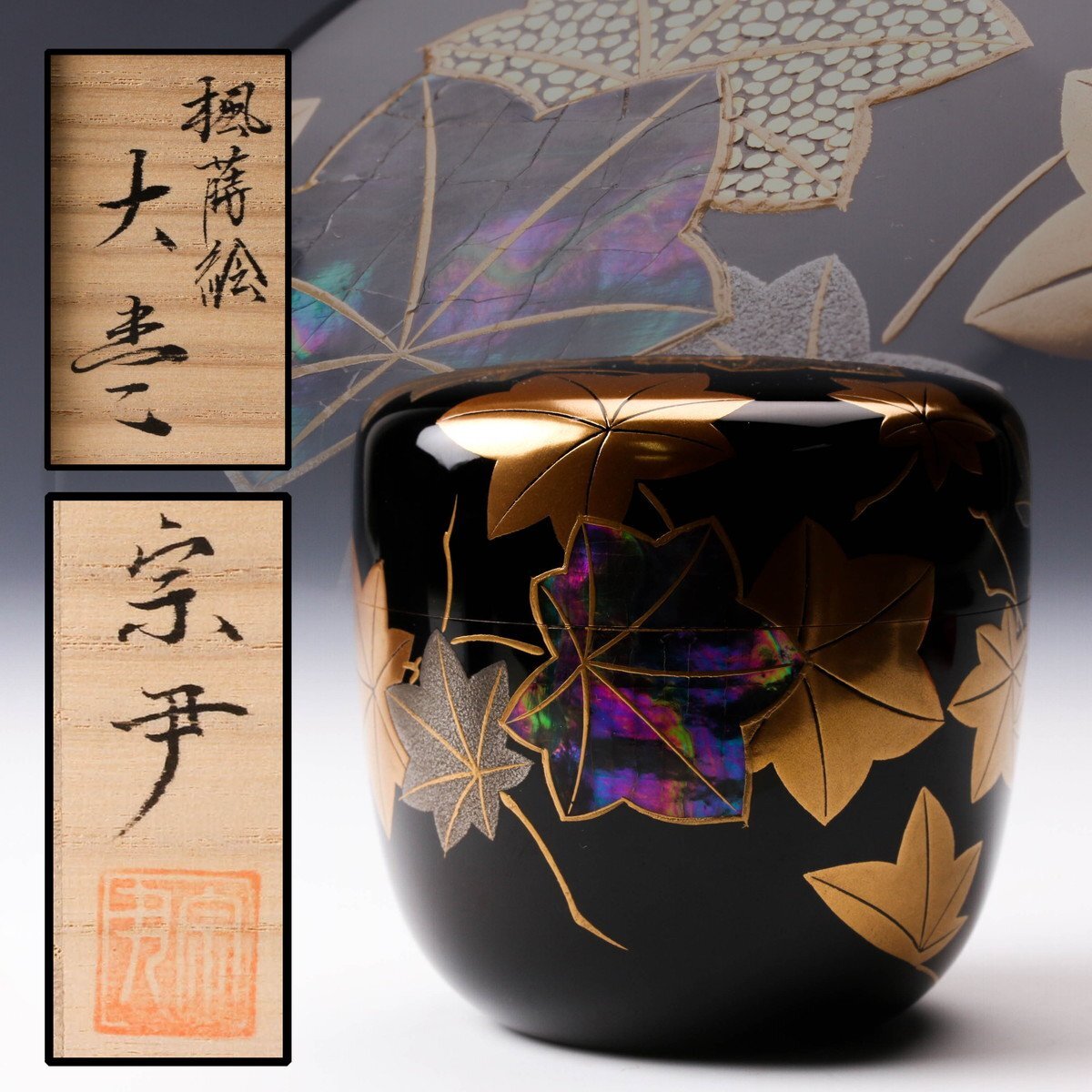 【佳香】中村宗尹 楓蒔絵大棗 螺鈿 共箱 栞 茶道具 本物保証