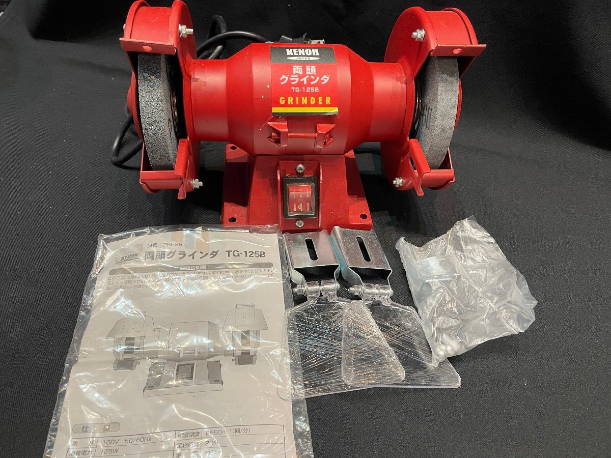 > ★動作OK! KENOH ケンオー 両頭グラインダー TG-125B 研磨機 グラインダー コード式 電動工具 重量約5kg 全長(約)幅285×奥170×168mm