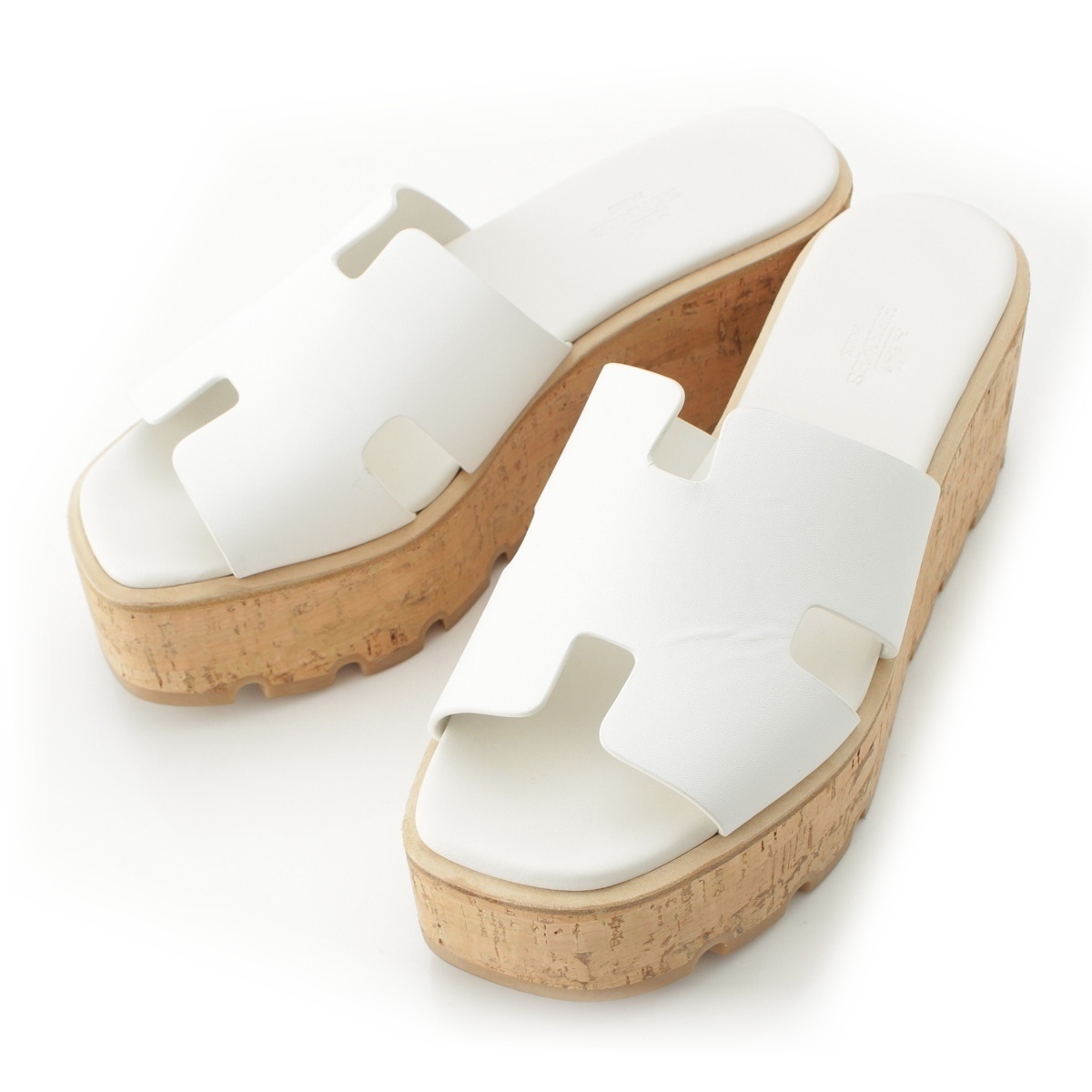 - エルメス エズ レザー Hモチーフ プラットフォーム サンダル ホワイト 37【中古】