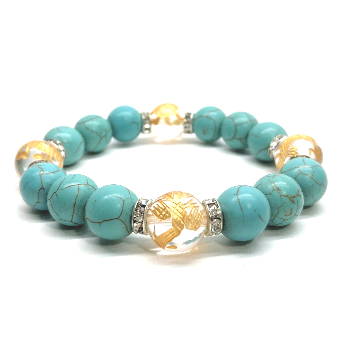 > 四神獣金彫水晶×ターコイズ 12mm パワーストーン ブレスレット青龍 白虎 玄武 朱雀 運気上昇 お守り 金運 健康運 四神獸 四神相応 S #2