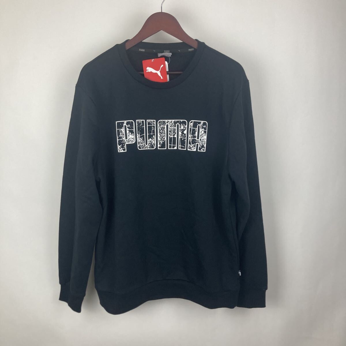 > プーマ PUMA ブラック スウェット XL 裏起毛 パーカー 黒 トレーナー 長袖Tシャツ 新品未使用 タグつき プリントTシャツ