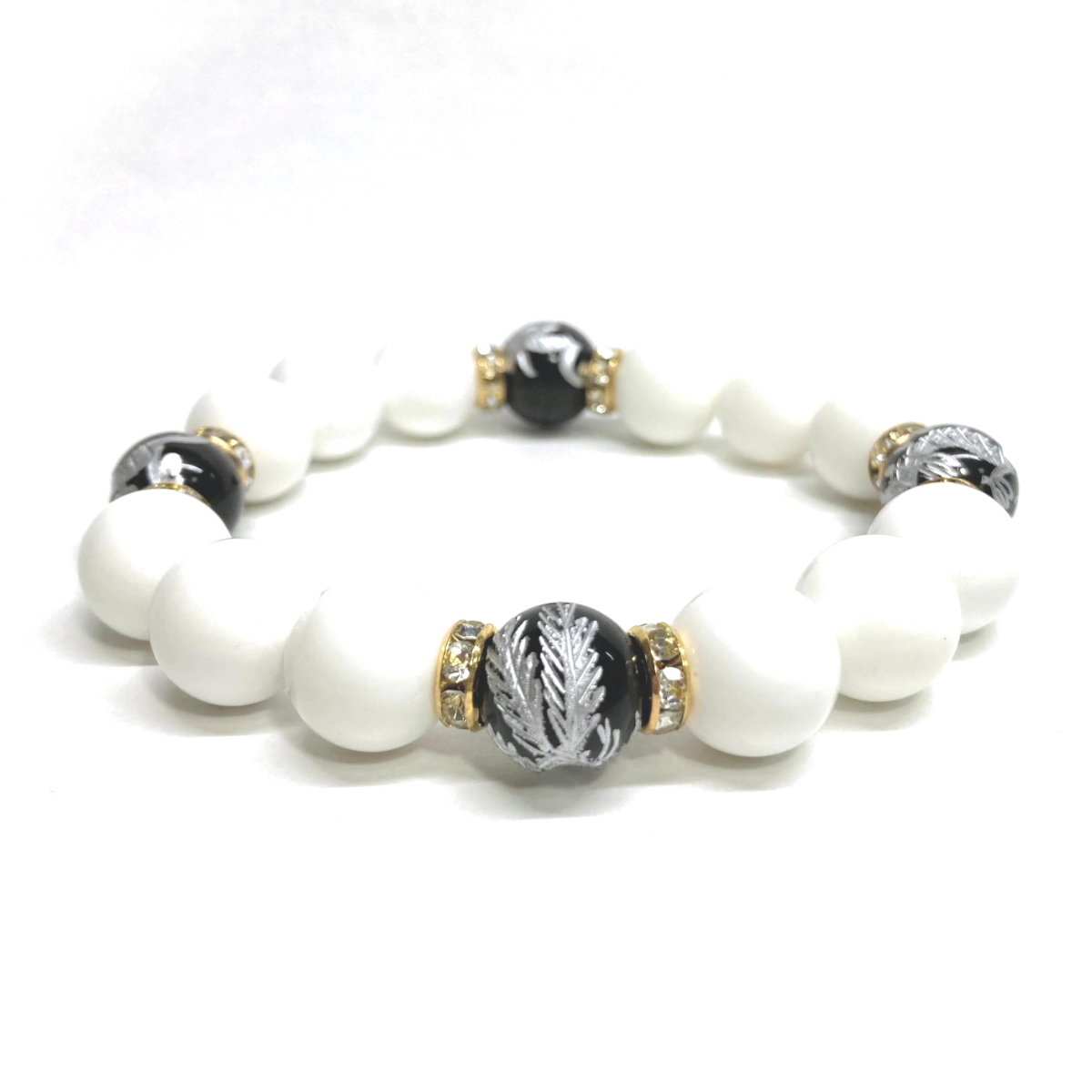 - 四神獣銀彫オニキス×ホワイトオニキス 12mm パワーストーン ブレスレット天然石 青龍 白虎 玄武 朱雀 運気上昇 開運 お守り 四神相応 G