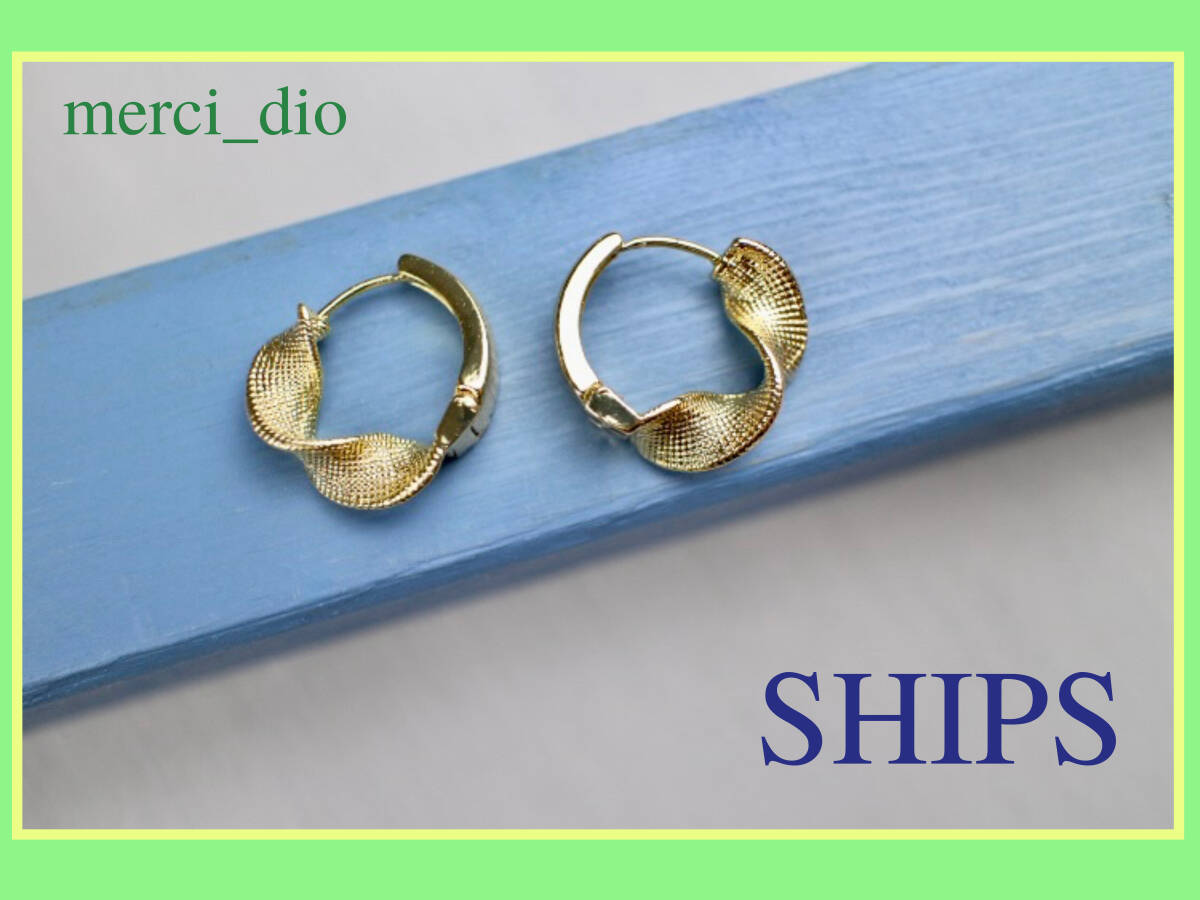 > シップス SHIPS アシンメトリー ねじり クロス フープピアス ゴールドカラー スモールフープ 新品 未使用 トゥモローランド wai