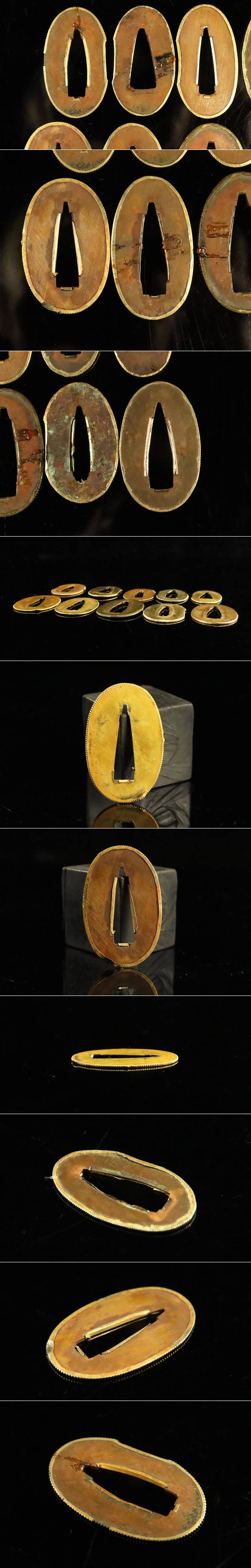 - 【ASAHI】金着せ切羽!金着縁頭!金被せ!刀装具 拵え 金無垢 10枚まとめて 52g1枚あたり2g~3gあたりの金がとれます。金保証[710133yp