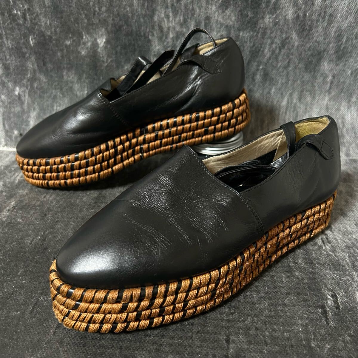 - Gianfranco Ferr ジャンフランコ・フェレ レースアップサンダル レザー エスパドリーユ ブラック *EZ