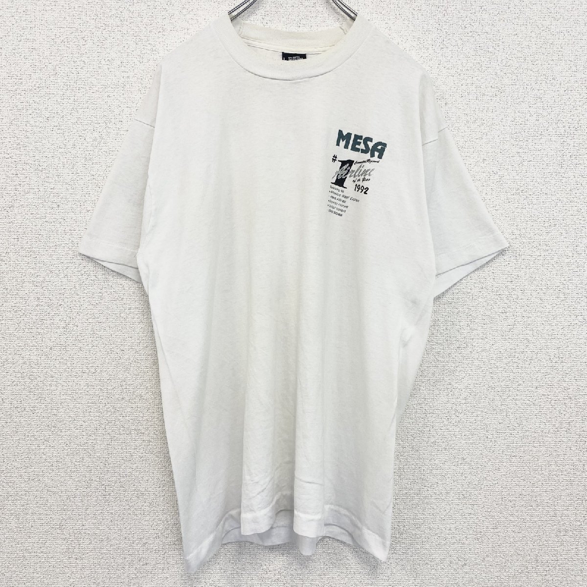 > 古着 used 半袖プリントTシャツ レトロデザイン クルーネック シングルステッチ 90s ヴィンテージ 白 ホワイト Lサイズ