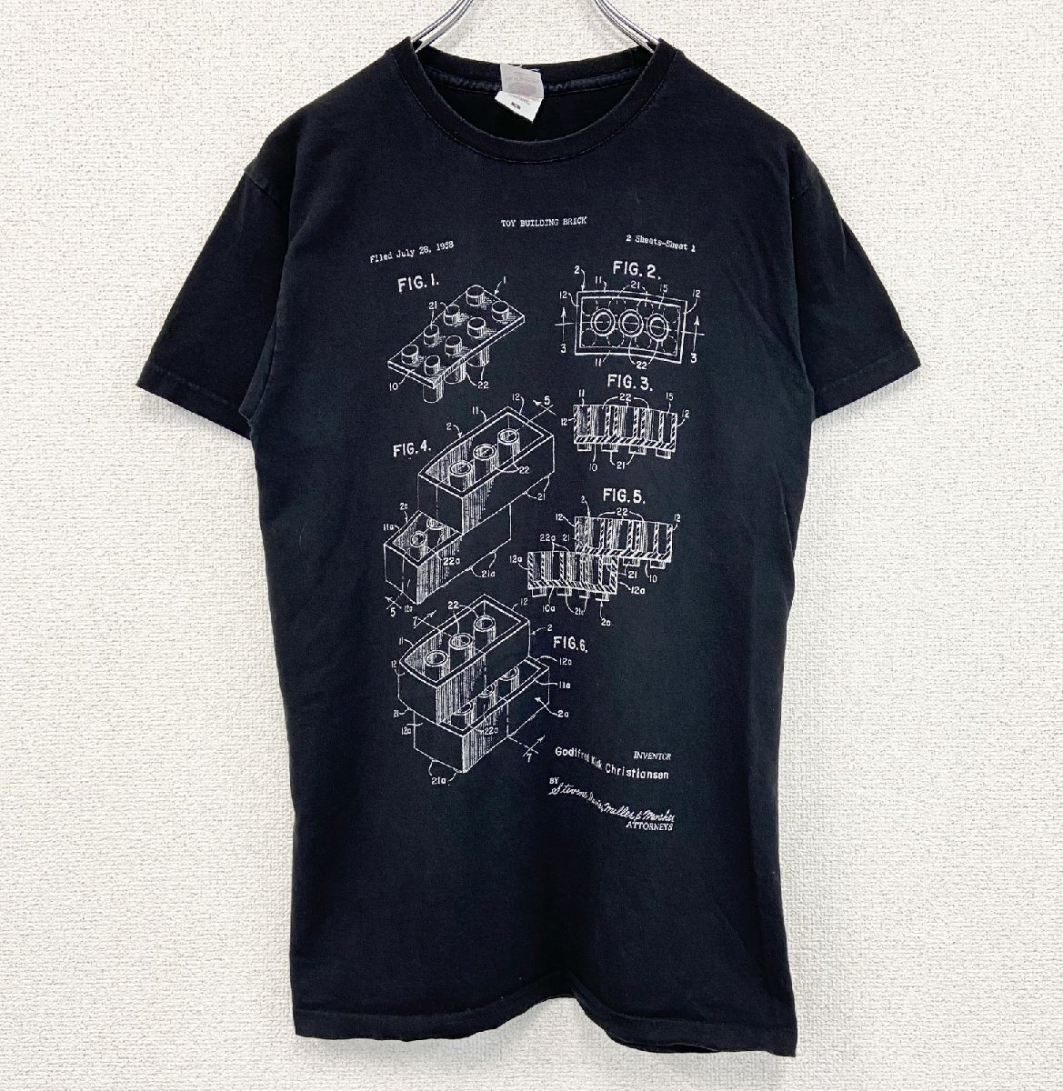- 古着 used FURUIT OF THE LOOM 半袖プリントTシャツ クルーネック 工程表 レトロデザイン 黒 Mサイズ