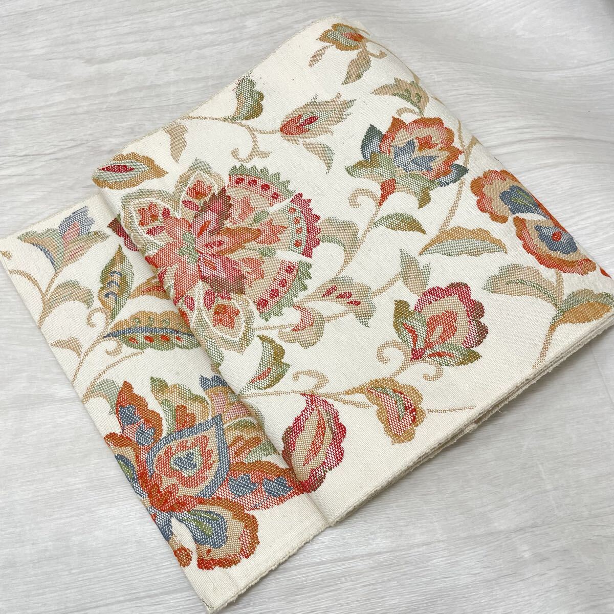 > 名古屋帯 紬 大柄更紗模様 八寸 正絹 着物 W-5195