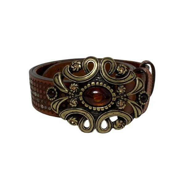 - エリオット ローズ ELLIOT RHODES - レザー ブラウン×ゴールド×オレンジ ラインストーン/カラーストーン/スタッズ ベルト