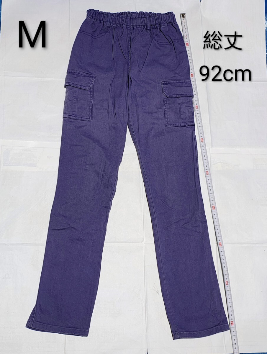 - スリムカーゴパンツ M ウエスト総ゴム 紫/パープル