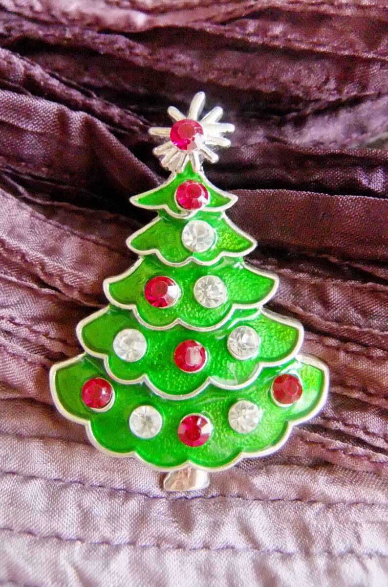 - 未使用品:2色ストーン、エナメルのクリスマスツリーブローチ B-2