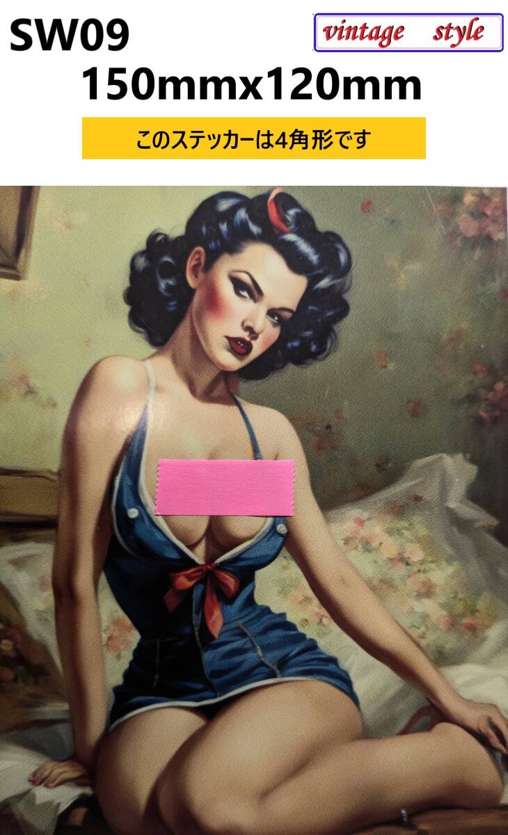 - SW09-02 特価~15%OFF レトロ 美人 セクシー&クール 顔上半身 ヴィンテージスタイル ピンナップガール セクシーステッカー ギター