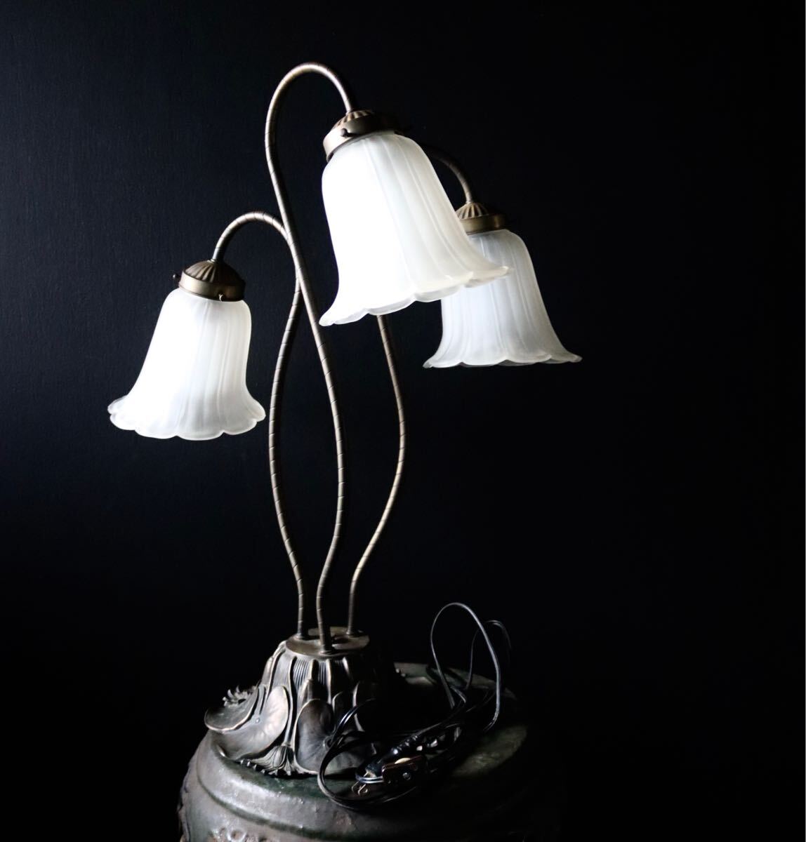- アンティーク レトロ テーブルランプ リリーランプ 3灯 照明 ガラス シェード ナイトスタンド インテリア シャンデリア 洋風 ビンテージ