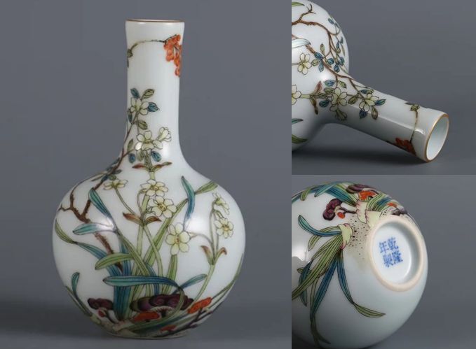 - ●清 乾隆年制款 琺瑯彩 唐草花文 花瓶 陶磁器 骨董品 中国美術●