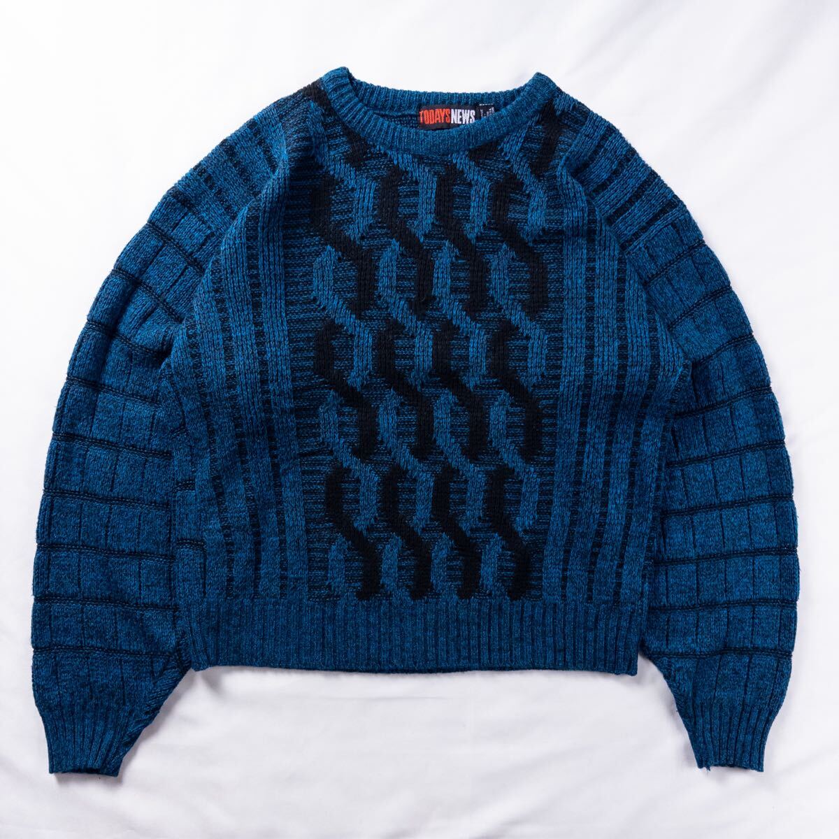 - US Vintage アメリカ製 80-90s TODAYS NEWS アクリル100% メランジ 立体 3D クレイジーパターン 幾何学模様 アート ブロック 総柄ニット