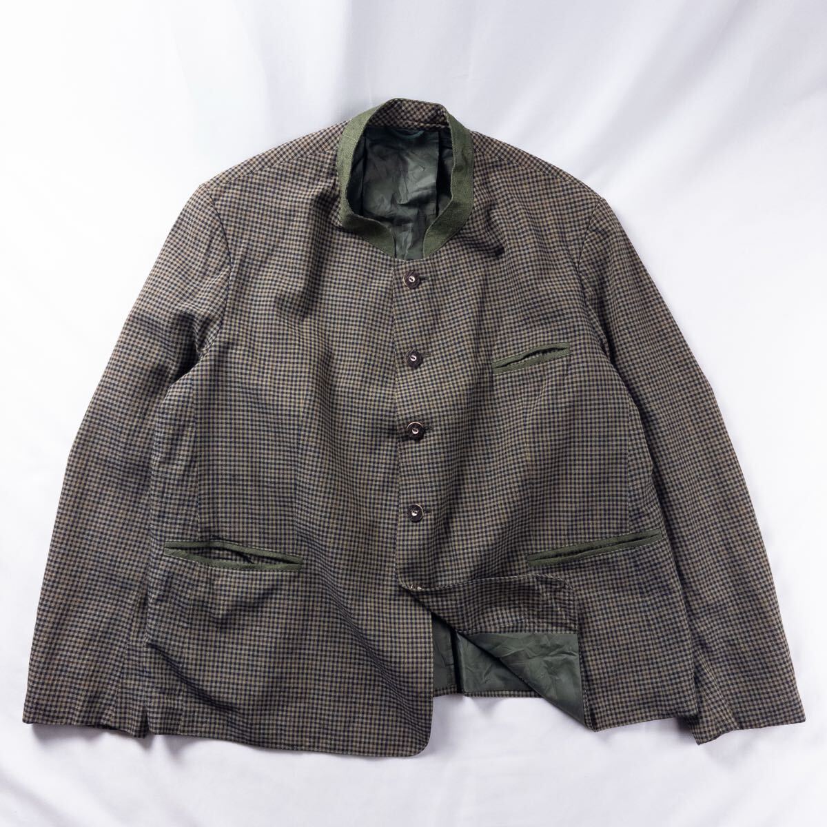 - Euro Vintage オーストリア製 Salyburger Tracht バンドカラー ギンガム シェパードチェック 民族 チロル チロリアン テーラードジャケット