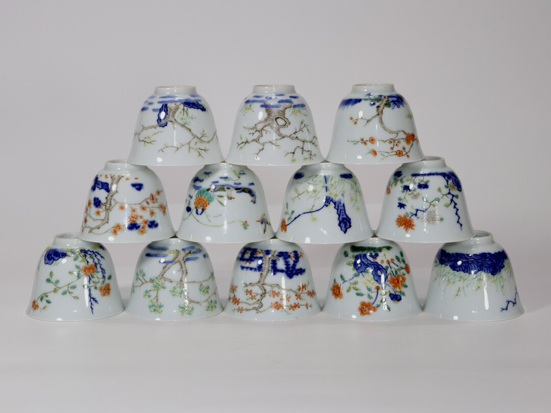 - ▽鴻▽清朝時代 陶磁器 大清康熙年製 五彩十二花神杯セット 12点 箱付 時代物 中国古美術 骨董品