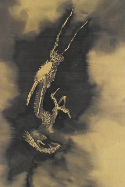 - K6035 模写 雲峰「昇龍図」絹本 合箱 雲龍 龍 竜 辰 日本画 中国 茶掛 絵画 掛軸 掛け軸 古美術 人が書いたもの