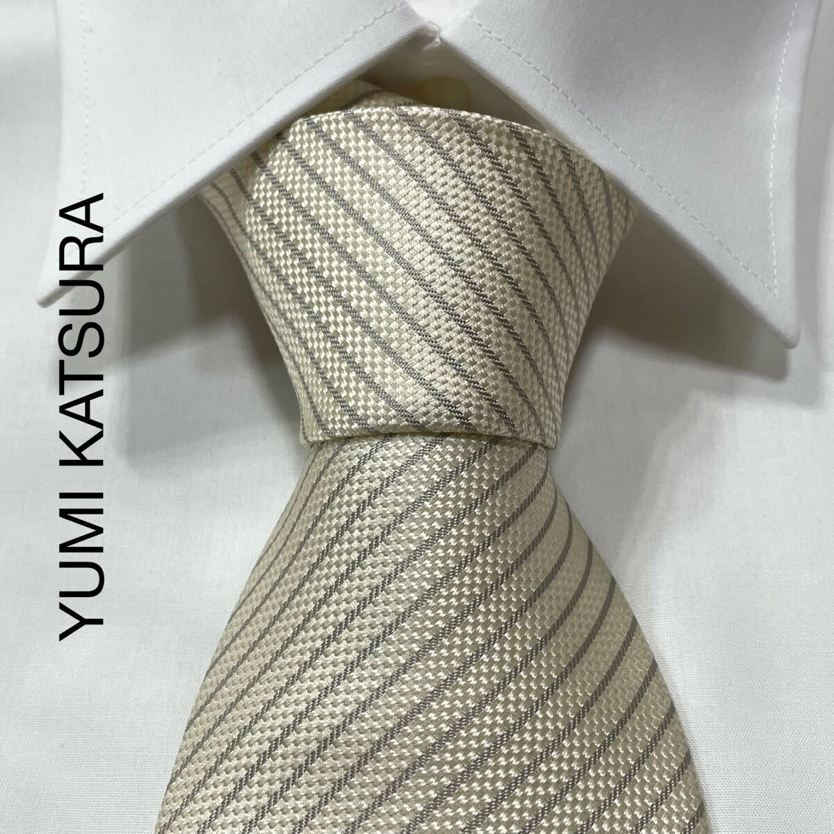 - YUMI KATSURA ユミカツラ レジメンタル ストライプ シルク ネクタイ 日本製 クリーム グレー TG3003