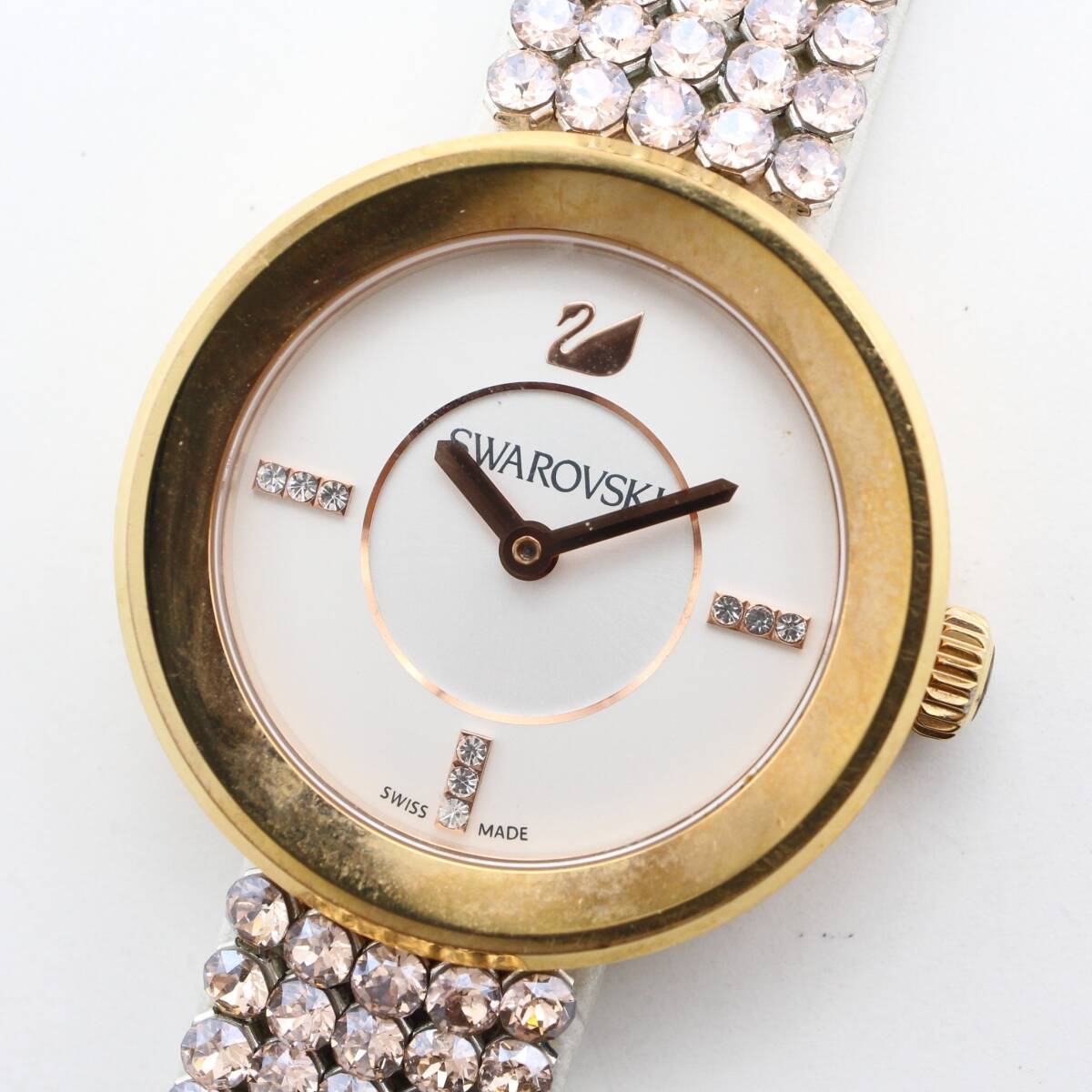 - 電池交換済み 【SWAROVSKI スワロフスキー】 ラインストーン クォーツ/QZ レディース 腕時計 ラウンド 稼働