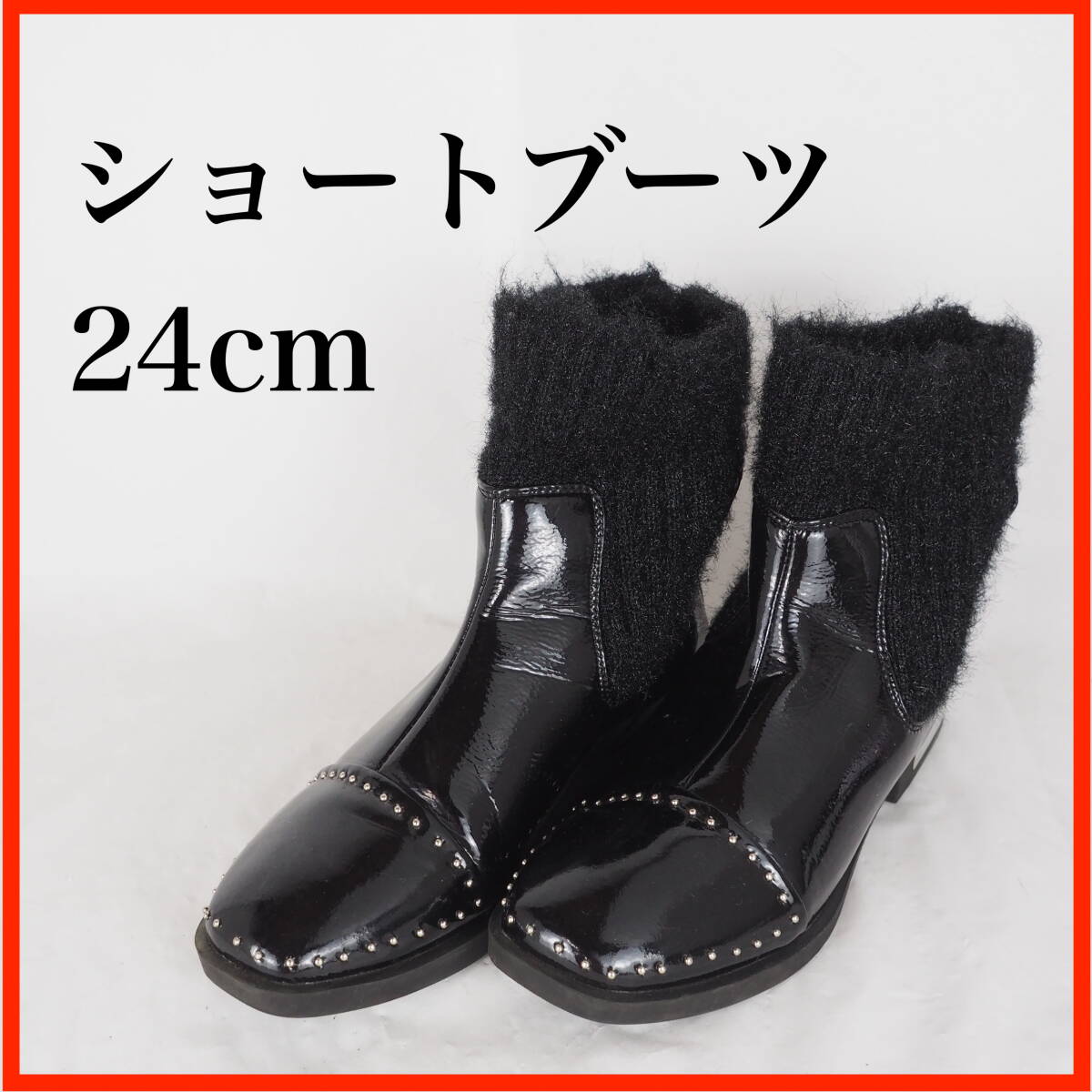 - GB0717*レディースショートブーツ*24cm*エナメル黒
