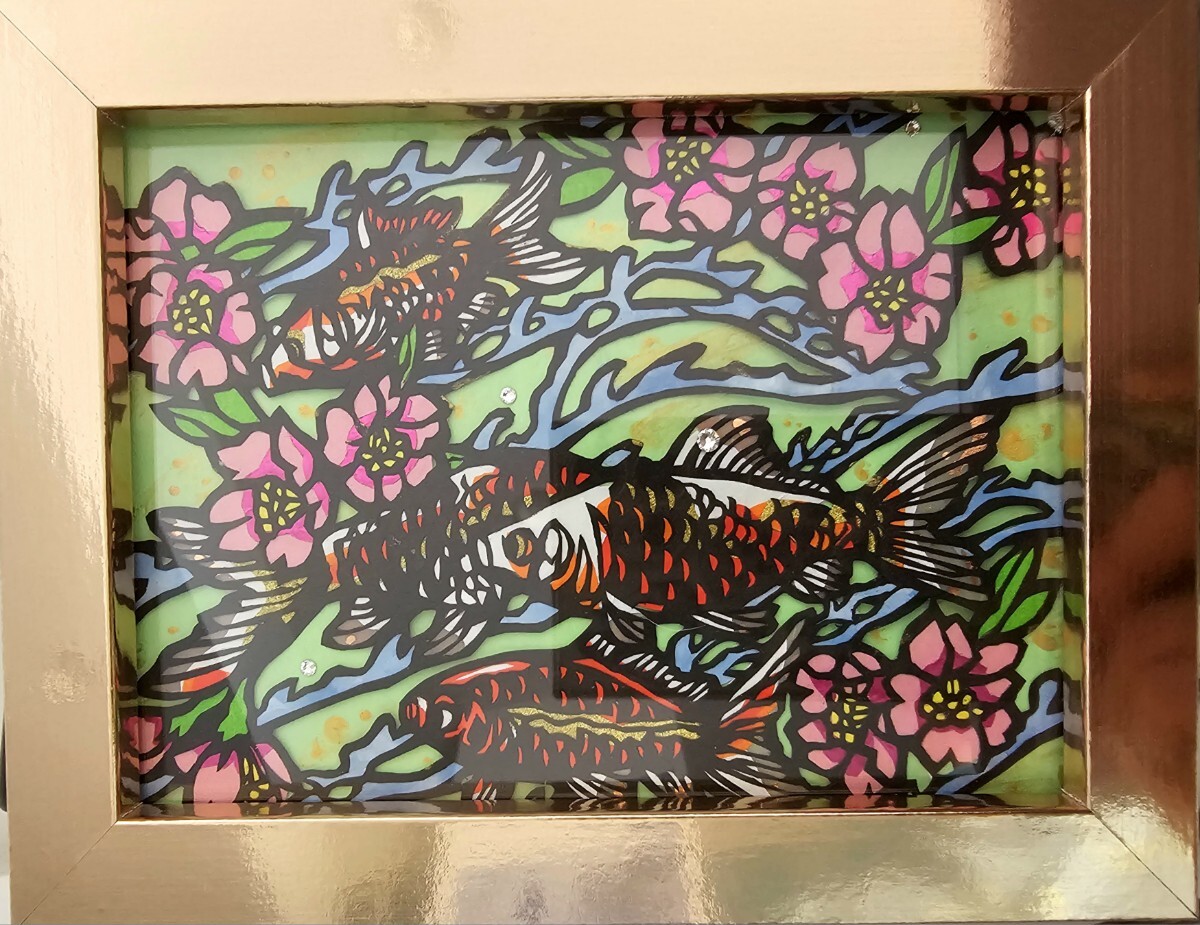 - 開運 切り絵 金魚 財運 仕事運 良縁 浄化 一点物 風水 インテリア アート