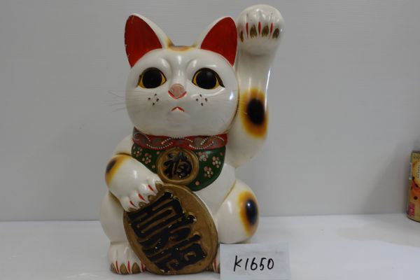 - 【k1650】特大 招き猫 焼き物 高さ40cm 陶器 縁起物 置物 現状渡し