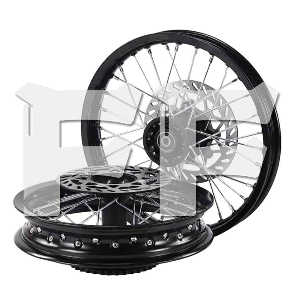 > 送料無料.. 1.60 17インチ フロント リム 1.85 14インチ リア リム ホイール 内径:15mm 32スポーク穴 モトクロスバイク ブラック 汎用