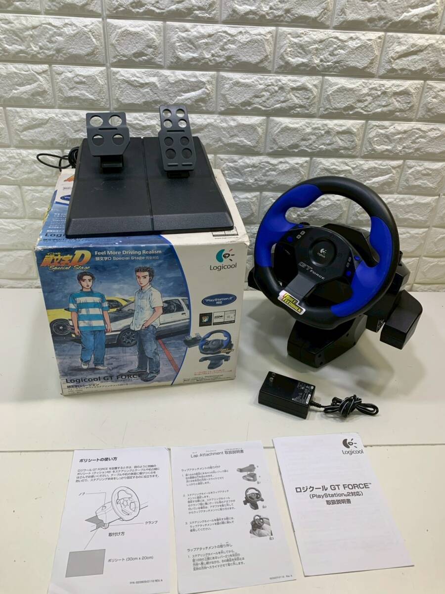 > 105D★ ロジクール ドライビングコントローラー Logicool GT FORCE プレステ2 PS2 頭文字D スペシャルステージ対応 箱付き 取説付き セット