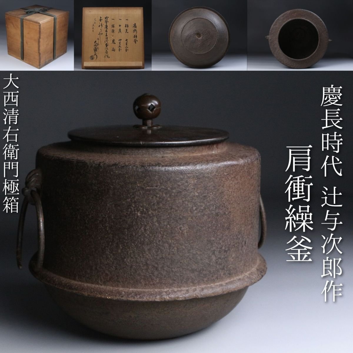 > 【LIG】桃山期 慶長時代 千利休御用釜師 辻与次郎作 肩衝繰釜 大西清右衛門極箱 古釜 茶道具 旧家収蔵品[.O]25.10