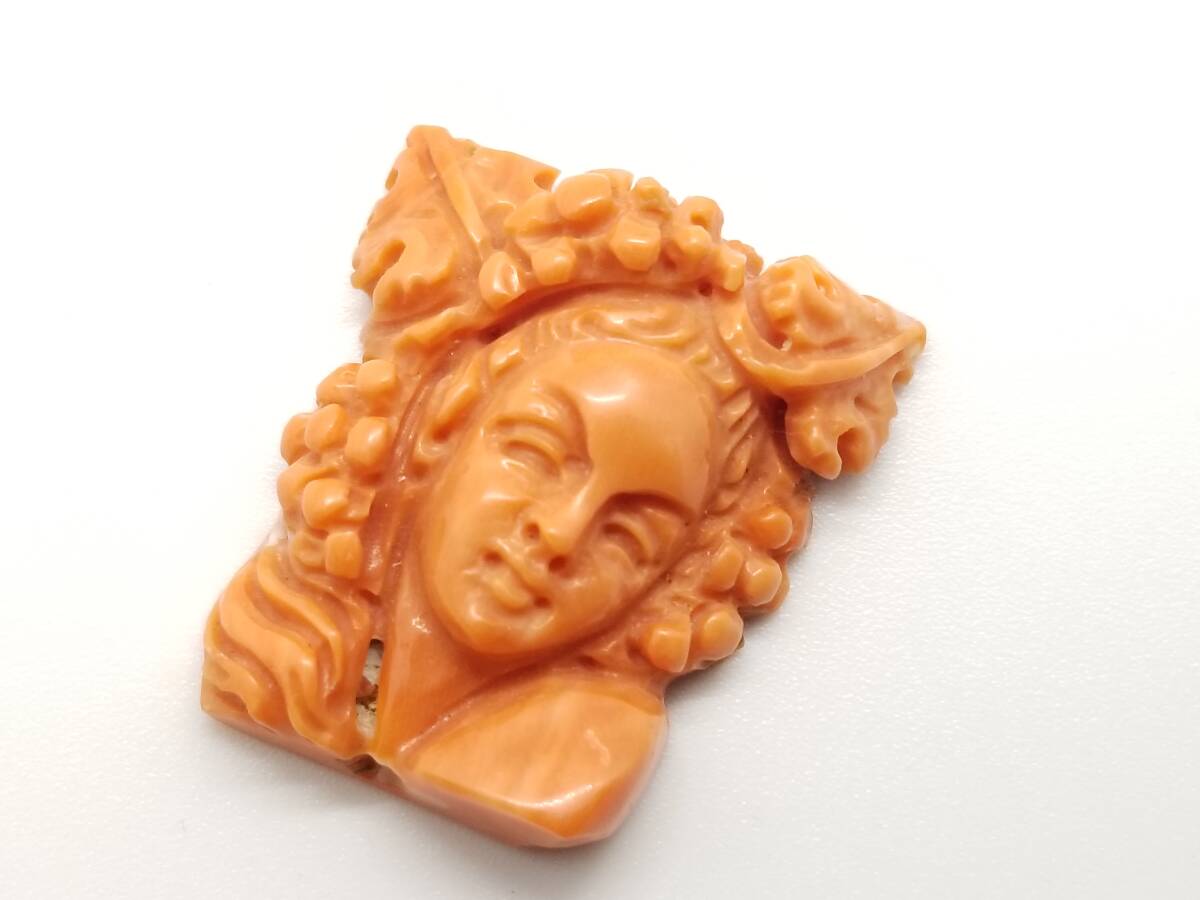 - 豪華!!ソーティング付★天然珊瑚 コーラル カメオ ヴィーナス彫刻ルース★38.617ct・サイズ約28.1×25.1×8.7mm☆ペンダントネックレス等に