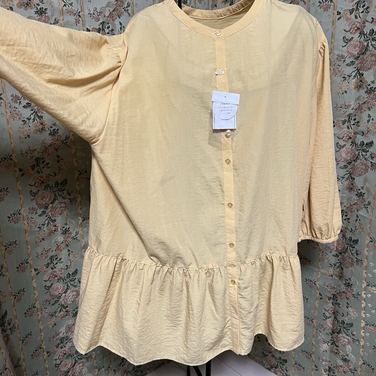 > 【新品タグ付】大きいサイズ 5L MB mint breeze ミントブリーズ ティアードブラウス イエロー ゆったり 羽織りにも◎ トップス レディース